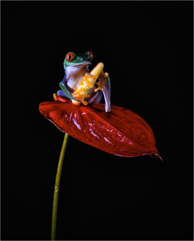 Red Eye Tree Frog on Lace leaf Plant